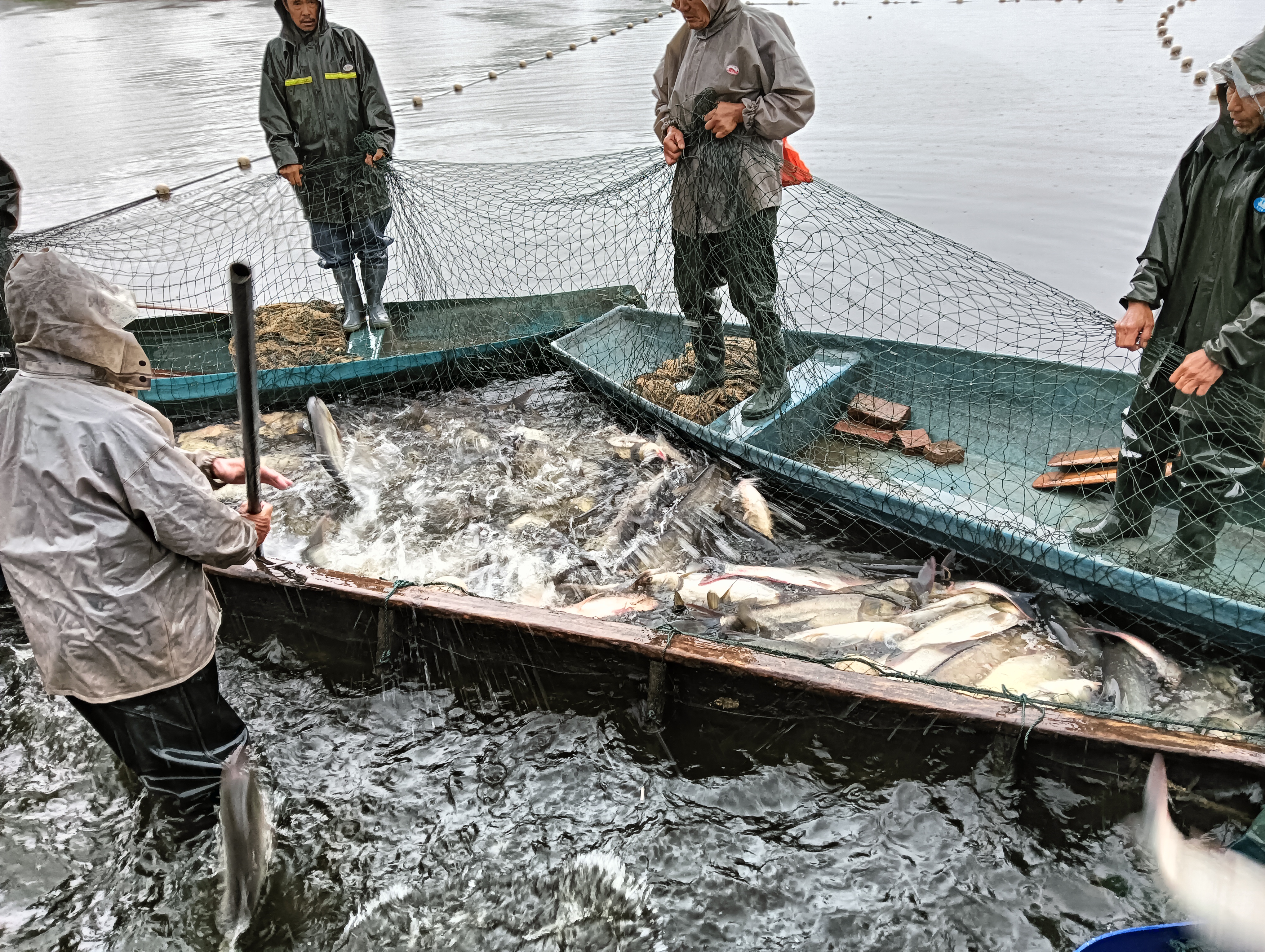 10月1日,水利電力公司在三溪口水庫(kù)開(kāi)展捕魚(yú)工作。